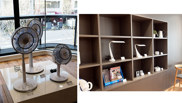 左)扇風機 コアンダエア、右)後ろの棚にもさりげなく