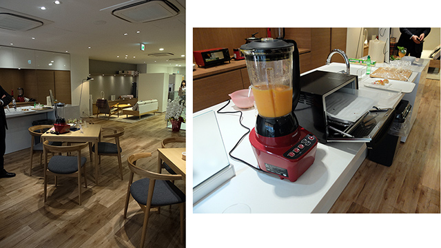 大きなキッチンが配置され、調理家電の体験イベントなどを開くことができるスペースが設けてあります。