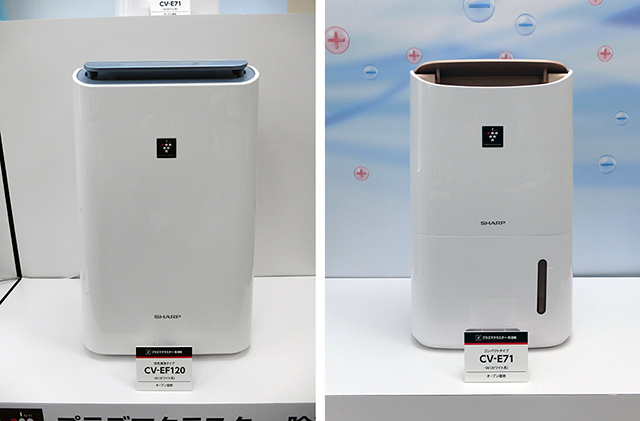 今回シャープは、空気清浄機と除湿機を組み合わせた本格的なもの、そしてコンパクト型の除湿機です。双方ともプラズマクラスターは組み込まれています。こちらの方も気になったのはコンパクト型。