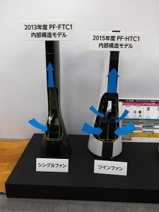 シングルファンからツインファンにして上に、吸い込み口の数を増やし、吸い込み面積を上げています。