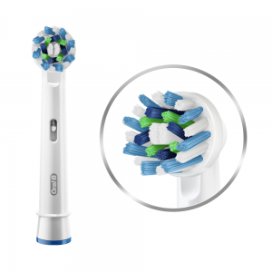 「ブラウン オーラルB PROシリーズ」のマルチアクションブラシは、16度に傾斜させた毛先を交差させて植毛するという毛先の配置パターンを丸型ブラシに採用しています。ブラシヘッド上で、高低をつけられた毛束は二重の円を描くように配置され、その各々の毛束の列が反対方向に傾斜する角度で植毛されており、臨床試験では、傾斜のついた毛先のブラシを、上下左右に回転するブラウン オーラルBと組み合わせて使用すると、効
