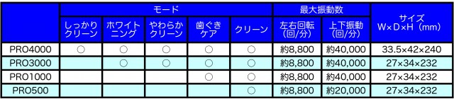 「PRO4000」「同3000」「同1000」では、「歯ぐきケアモード」を採用。