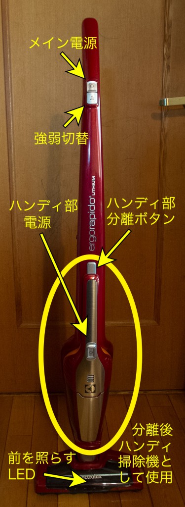 エルゴラピードも、他のスティック型掃除機と同じように、掃除機はハンディ型が原型となっています。