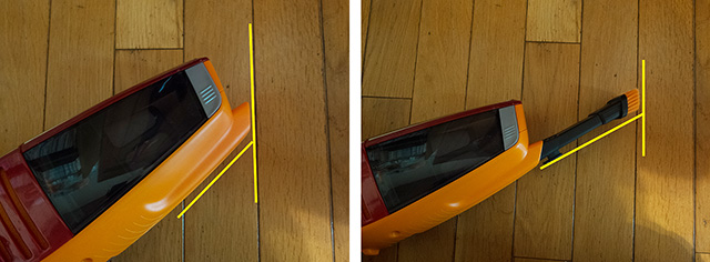 ハンディ掃除機部分の位置をできる限り下に持ってきたのです。