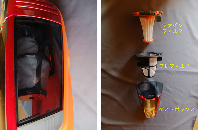 サイクロンに加え、2つのフィルターがあるので排気はキレイ。