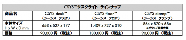 今回、発売されるCSYSタスクライトは、ヒートパイプテクノロジーを搭載し、8つの高性能LEDチップが生み出す温かみのある白色の光を、3 Axis Glide (アクシスグライド) モーションによるスムーズな動きを活かし、お好みの位置で固定することが可能です。