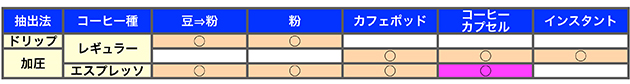 それは、カフェポッドの、ドリップ、エスプレッソに対するポジションのことです。