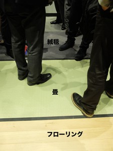 人が多くて足で踏まれていますが、フロアにいろいろな素材が置いてあります。