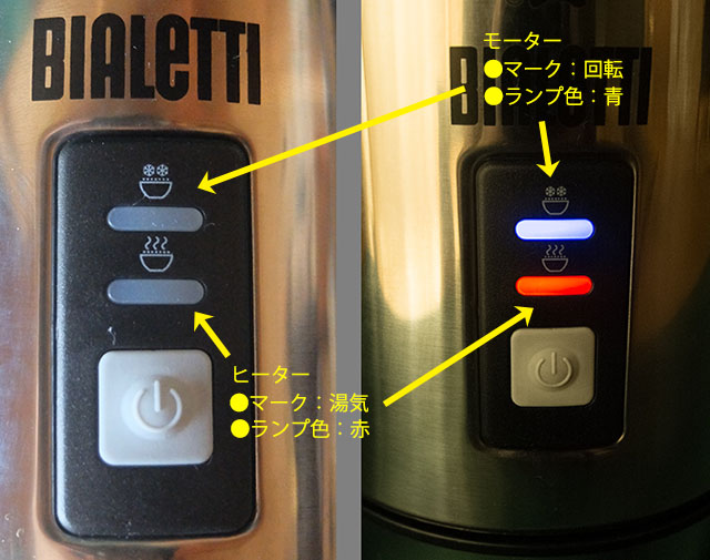 パイロットランプにより、「モーター」「ヒーター」どちらが、動いているかが分かる。