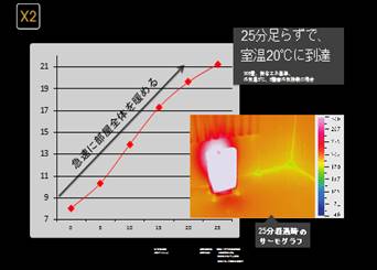外気温が5℃の状態でもわずか25分足らずで一気に20℃まで暖めます。