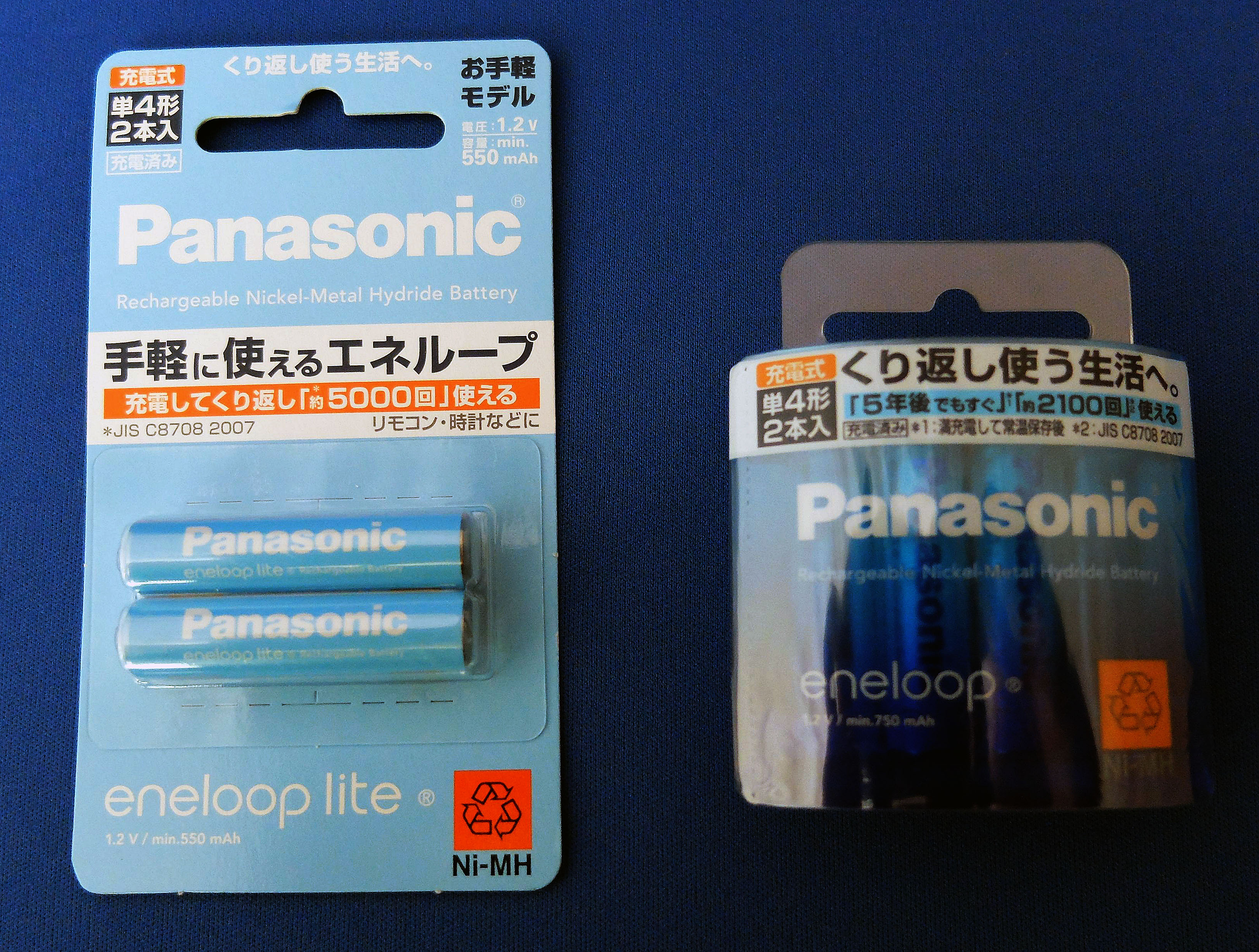 同じ eneloop の種類違いである。脳が動かなくなったのは、eneloop liteの方の「お手軽モデル」「充電して5000回使える」という語が飛び込んで来たためである。