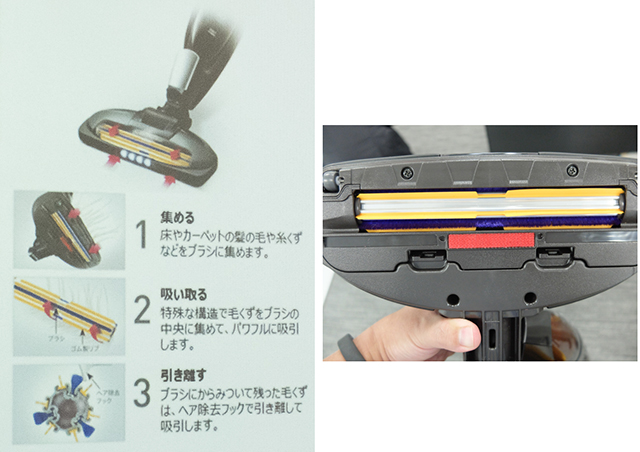 左)『お手入れ簡単ブラシ』の説明、右)実物