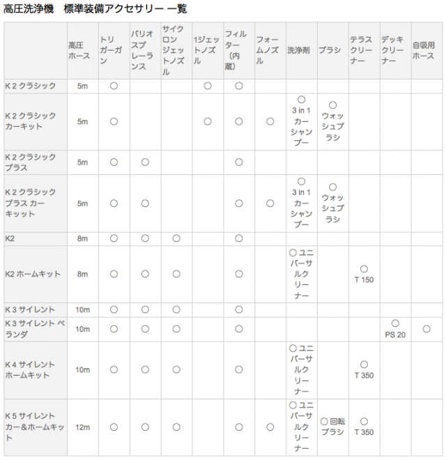 また、洗車に適した「カーキット」、家まわりの洗浄に適した「ホームキット」と、お客様の使いたい用途にあわせたアクセサリーキットが標準装備されたモデルになっています。