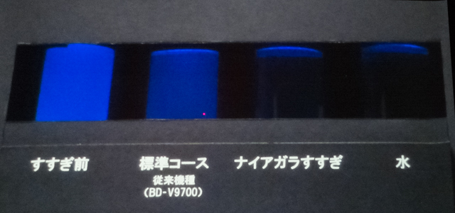 ナイアガラすすぎを行うと、水と同レベルまで、洗剤成分がなくなることが分かる。