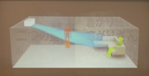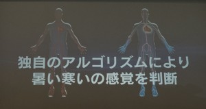 この自動でコントロールするためには、部屋と、その部屋に居る人の情報を的確に掴む必要があるのですが、ここで活躍するのが、左右方向のセンシングをより細分化、解像度を4倍に上げた「ムーブアイ極」です。手先、足先など、温度変化が最も大きい部分を的確にとらえ、体との温度差で、その人の感じ方を推定します。
