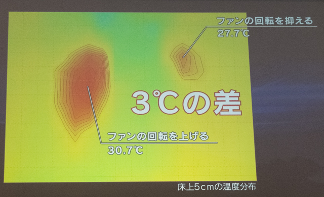 風で変えることができる温度は、最大3℃。
