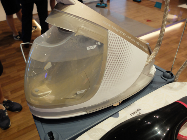 フィリップスのミニスチーマー。赤いボタンでスチームが吹き出す。