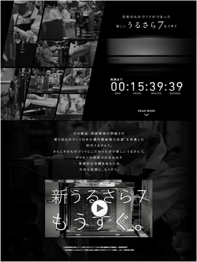 ダイキン工業(株)が、 10月1日11:00に予定しているルームエアコン『うるさら7』の新製品発表に先駆けて、 発表までのカウントダウンサイトを公開しています。