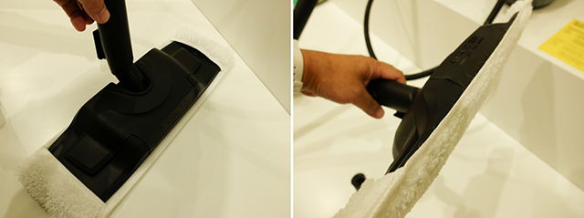 左)ぴったりハマります。右)雑巾はズレずに自在に拭ける。