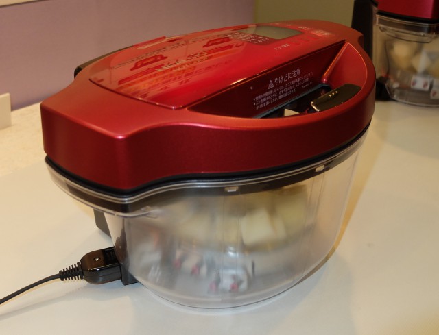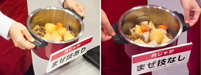 展示会用のスケルトンモデル。煮るところが見えるのが面白い。