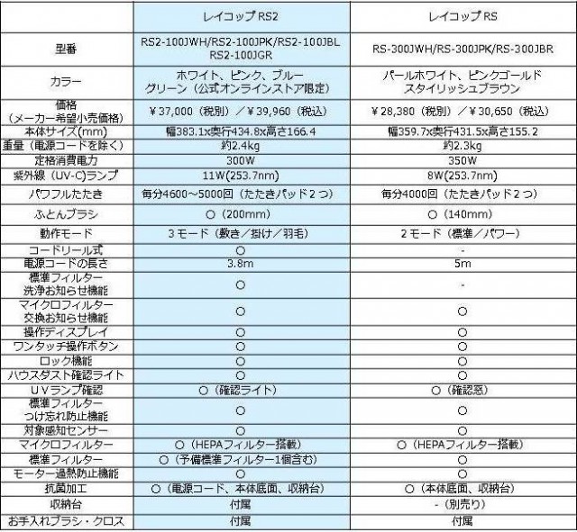 レイコップ・ジャパン(株)から、「レイコップ RS」をさらに進化させた新製品「レイコップ RS2」が、37,000円(税抜)で、2015年10月29日(木)に発売されます。