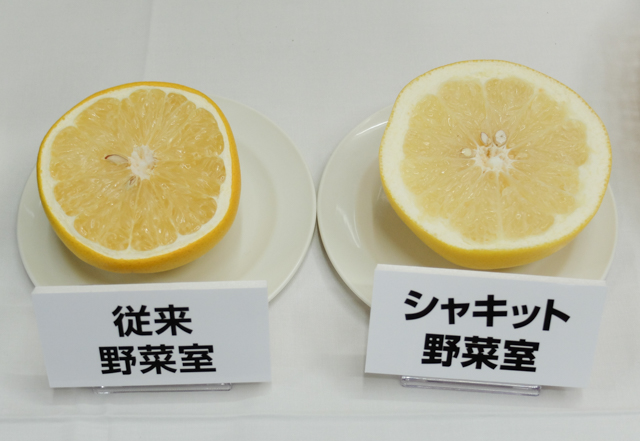 野菜の水分を保つ野菜室。 グレープフルーツでの比較。