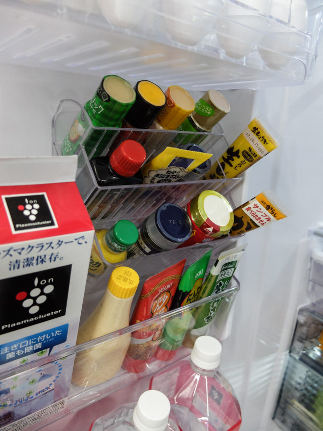 しかし、この様に、野菜、調味料が同じ扉内にあるとかなり便利。