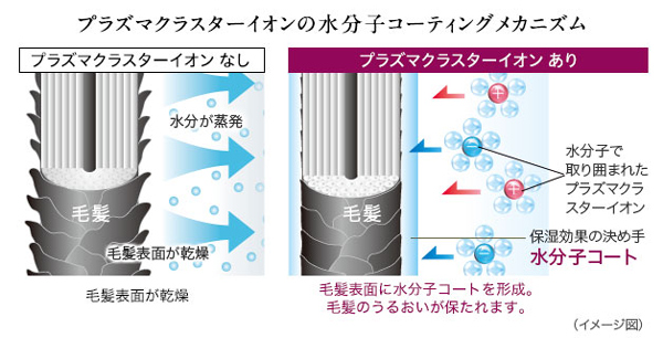 プラズマクラスターイオンの静電気抑制効果とうるおい効果によって、手触りのなめらかな、美しくまとまりのあるヘアスタイルに仕上げます。