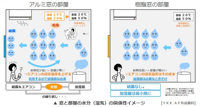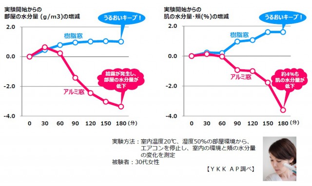 つまり「樹脂窓」なら、肌のうるおいに必要な部屋の湿度を保持できることがわかりました。