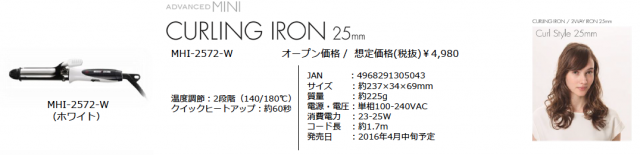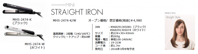 そのスタイリングツールを提供する(株)mhエンタープライズから、サロン仕様の本格機能を備えたコンパクトサイズヘアアイロンの新シリーズ「ADVANCED MINI(アドバンスミニ)」が、2016年3月中旬より今年の春に向けて、全国にて順次発売されます。