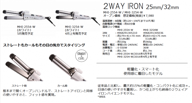 やすさを実現したハイスペックフルサイズモデルの、2WAYアイロン(2機種:25mm,32mm)も発売致します。