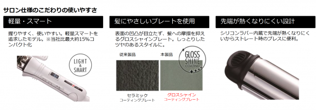 ●髪のダメージを軽減する、グロスシャインコーティング採用(ブラシタイプを除く)