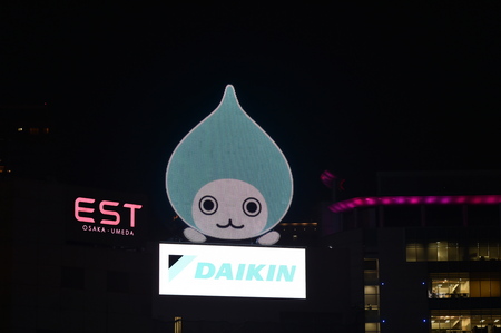 ダイキン工業(株)は、大阪・梅田のシログチビル屋上にて設置工事を進めていた空気の看板「大ぴちょんくん」を3月16日(水)夜より点灯します。