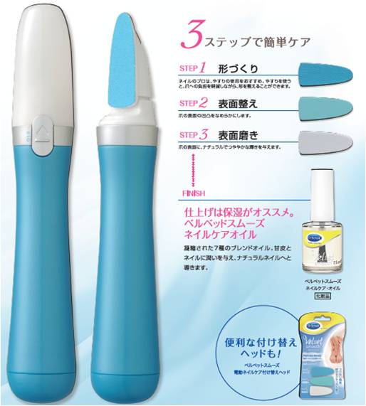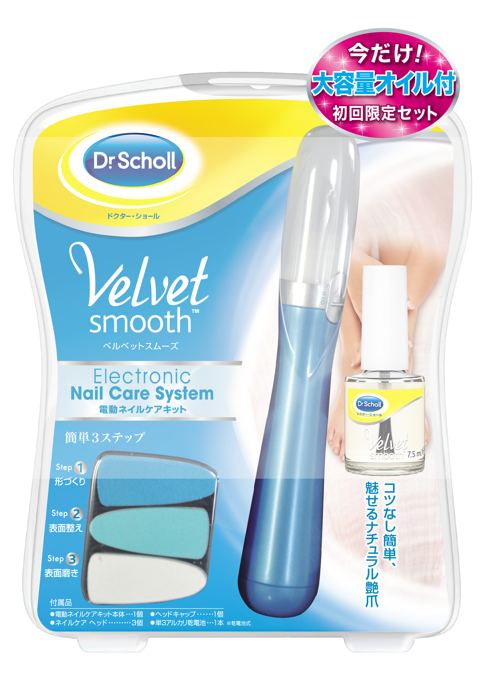 レキットベンキーザー・ジャパン(株)から、世界100カ国以上で愛されるフット&レッグケア商品の総合ブランド『ドクター・ショール』の電動ネイルケア商品「ベルベットスムーズ 電動ネイルケアキット」と「ベルベットスムーズ 電動ネイルケア付け替えヘッド」が発売中2016年4月1日です。