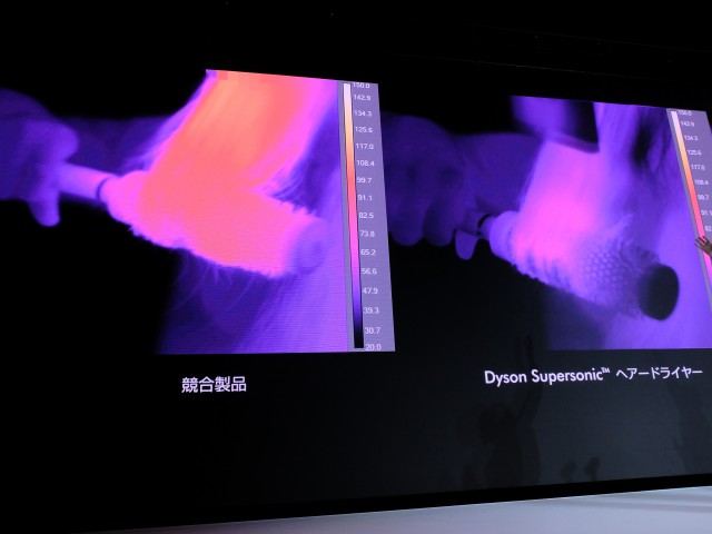 右)ダイソンのドライヤー 全部が設定通りの温度になっている。