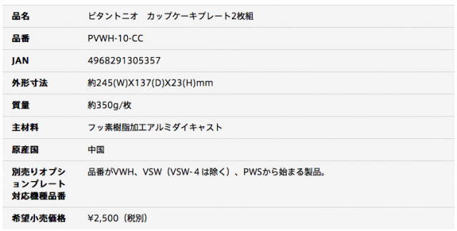 同社のブランド、「Vitantonio(ビタントニオ)」より、ワッフルベーカー専用オプションプレートの新作、「カップケーキプレート」が、希望小売価格:2,500円(税抜)で発売になるそうです。