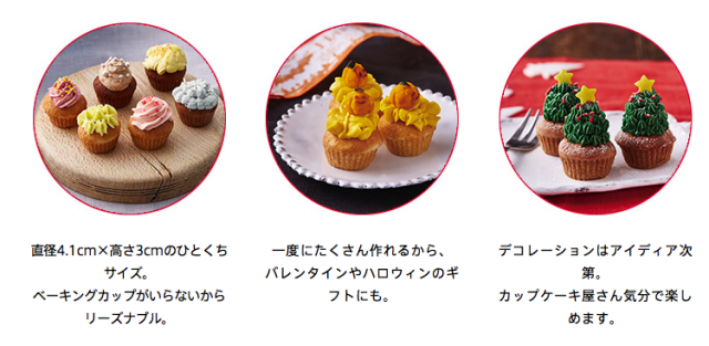 ベーキングカップのリブの形ひとつひとつまで再現した、ミニチュアのような焼き上がりにこだわっています。バタークリームでデコレーションすれば、専門店のような本格的な仕上がりを、気軽にお楽しむことができます。