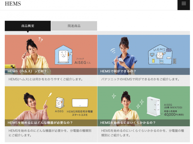 パナソニック(株)エコソリューションズ社が、「スマートHEMSHEMS:ホーム・エネルギー・マネージメント・システム。スマートHEMSは、HEMSに関するパナソニックの商品群の総称」の利便性を紹介するWEBサイト「HEMSニャン」を2016年6月20日(月)より公開しました。