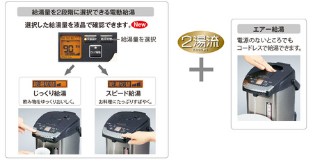 ■使い方が広がる2湯流給湯「2段階電動給湯 & エアー給湯」
