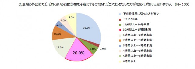 夏場のエアコン利用に関する生活者アンケートを行ったところ、約7割の人が「つけっぱなしの方が電気代が安い」と考えていることがわかりました。しかし、実際に外出時にエアコンのつけっぱなしを実践している人は約5割にとどまり、本当につけっぱなしの方が安いのか疑問を持っている人が多いようです。