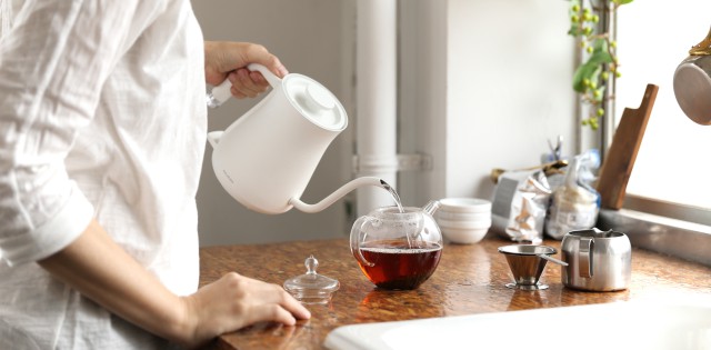 「BALMUDA The Pot」はコンパクトで注ぎやすいデザイン。毎日使いたくなる手軽さを実現しています。