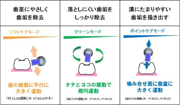 オムロン 音波式電動歯ブラシ HT-B315、HT-B313主な特長