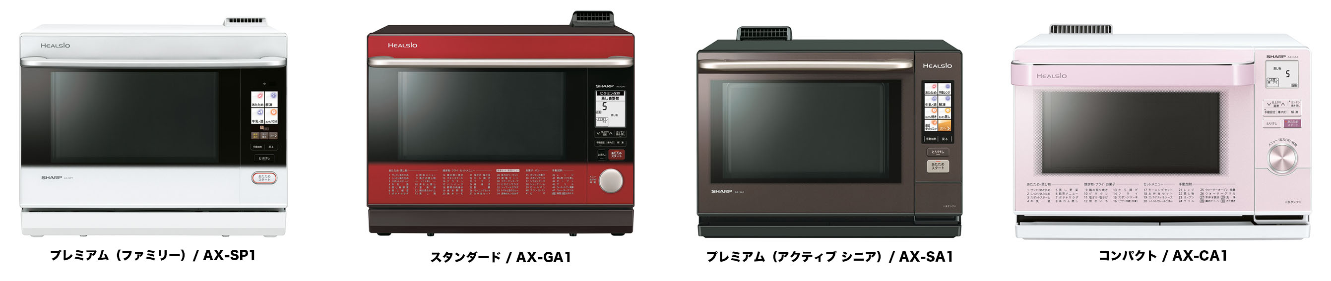 ファミリー向けプレミアムタイプ AX-SP1に加え、子育てファミリー向けのスタンダードタイプ AX-GA1、「4.3型カラータッチパネル液晶」「ココロエンジン」で使いやすさにこだわったアクティブシニア向けのプレミアムタイプ AX-SA1 、シングル層や夫婦二人世帯向けのコンパクトタイプ AX-CA1 の4つです。