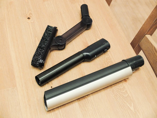 その代わり、ハンディとして使うときは、重い部分を切り離し、単なるハンディ型にします。これに各種アタッチメントを付け使うのですが、やはり、どちらかというと振り回しにくい。キャニスター型ほどではありませんが、ちょっと面倒なのも事実です。