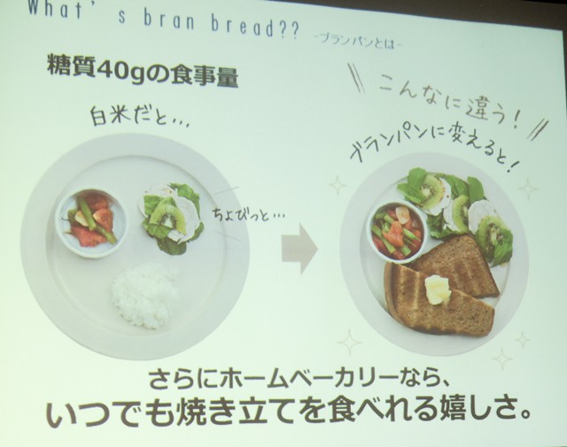 対応ホームベーカリーは、「ツインバード工業」側の受け持ちです。こちらは、通常のホームベーカリーに、ブランパン専用モードを搭載しています。
