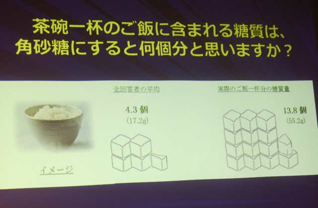 ご飯一膳で、角砂糖13.8個分の糖質。