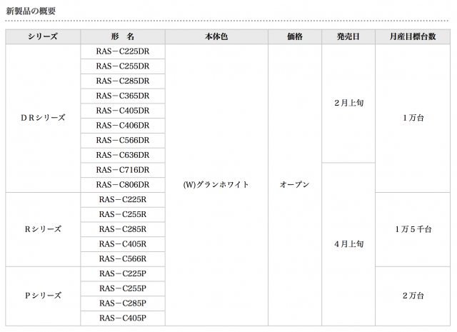 東芝ライフスタイル(株)から、「プラズマ空清」による強力な空気清浄機能を搭載したルームエアコン『大清快』の「DRシリーズ」10機種が、オープン価格にて、2月上旬から「Rシリーズ」5機種が、「Pシリーズ」4機種が4月上旬から発売されます。