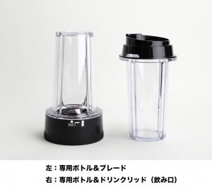 付属の専用ボトルは、飲み口(ドリンクリッド)も付いており、作ってそのままジュースを飲むこともできます。