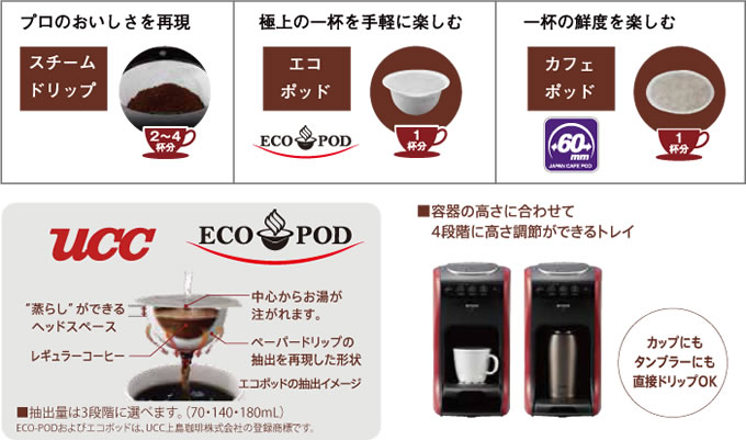 2)美味しさと利便性を両立させたUCCの「エコポッド」。 UCCと一緒に開発、エコポッドの最適条件で抽出致します。
