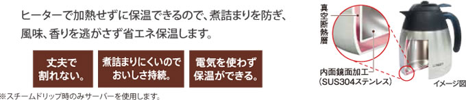 ■真空二重構造ステンレス製まほうびんサーバー(スチームドリップ時のみ)